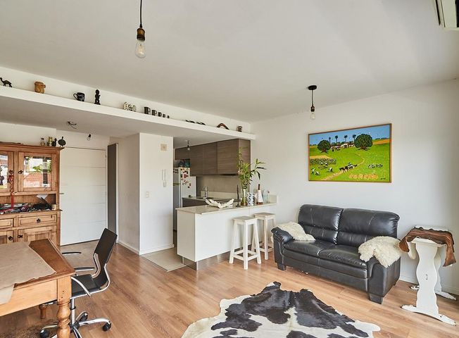 Venta Departamento 2 ambientes Coghlan - Complejo NAON GREEN 3°piso: 46 mt -Living comedor con cocina completa, horno, anafe, extractor de olor, con grandes ventanales -Dormitorio con placard completo de excelente calidad con grandes ventanales -Balcon de 10 mt con vista abierta -Baño completo -Losa radiante y aire acondicionado en todos los ambientes -Grupo electrógeno en caso de corte de luz 4°piso: 45mt -Terraza privada con vista abierta -Parrilla con mesada -Baño completo -Jacuzzi para dos personas Sub suelo: 24mt. -Cochera grande para auto y moto -Baulera privada junto a la cochera Planta baja: Amenities de uso común. -Pileta -Gym -Lavadero de ropa -Sum con cocina completa y baño completo -Segundo Sum con Parrila grande con cocina y heladera -Cava para el vino -Jardin amplio con pasto y flores Corredor responsable Carlos D´Odorico CUCICBA Mat 421