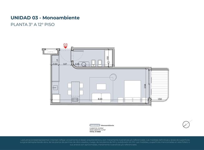 VENTA MONOAMBIENTE CON BALCÓN EN AV. DEL LIBERTADOR Y UGARTE, PROXIMO AL BARRIO RIVER, BARRIO BELGRANO Moderno monoambiente ubicado en el 4° piso al contrafrente, dentro de un desarrollo de categoría sobre Av. del Libertador, ideal para quienes buscan tranquilidad, privacidad y diseño en una ubicación estratégica. La unidad cuenta con 33,65 m² cubiertos y 4,27 m² semicubiertos, alcanzando una superficie total de 37,92 m², con una planta funcional que prioriza la luz natural y el confort diario. Dispone de un ambiente amplio y bien distribuido con salida a balcón al contrafrente, ofreciendo un entorno más silencioso y reservado. Cocina integrada totalmente equipada con horno eléctrico, anafe vitrocerámico y mesadas de cuarzo tipo Purastone, muebles de diseño contemporáneo y excelentes terminaciones. Baño completo con revestimientos en porcelanato, griferías y sanitarios de primera línea. El edificio ofrece amenities de primer nivel: piscina con vista abierta y solárium, gimnasio vidriado, SUM con parrilla y terraza, y laundry. Además, incorpora detalles de alta gama como carpinterías con DVH, aire acondicionado frío/calor tipo inverter y cerraduras electrónicas. Una propuesta ideal para vivir o invertir, combinando calidad constructiva, confort y una ubicación privilegiada, con la calma del contrafrente. IMPORTANTE: EL PRECIO ESTA SUJETO A APROBACION DEL PROPIETARIO. TASAMOS TU PROPIEDAD EN EL DIA Contamos con profesionales especialmente entrenados para tasar el valor real de los inmuebles y establecer los criterios adecuados para la cotización del mismo, respetando el patrimonio del cliente que nos confía su propiedad. MATRICULA CUCICBA 5473