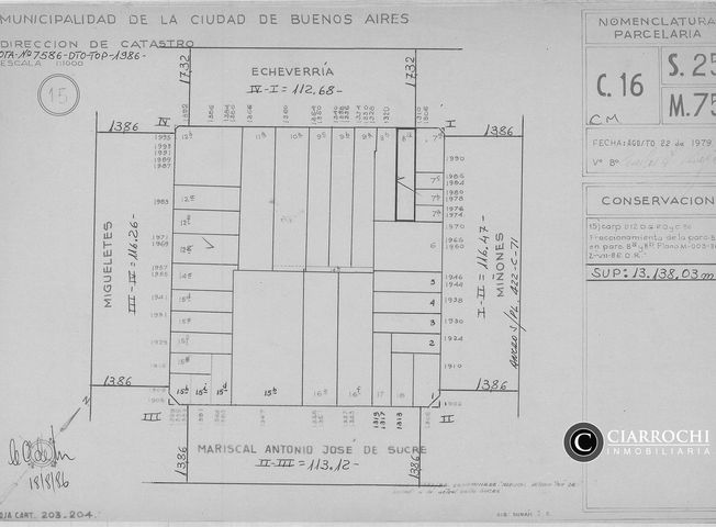 Excepcional Terreno en una de las zonas mas buscadas por el mercado, sobre la calle Echeverría y Miñones, Belgrano Chico. Sup. Total del Lote: 840 m2. El terreno tiene construido un inmueble con 2 patios • Medidas del Terreno: 14 m de frente x 60 m de fondo. • Zonificación: U23, Z1 *Se toman Propiedades en Parte de Pago en Argentina y Uruguay. Ubicación Ideal en Bajo Belgrano, excelentes accesos, próximo a Av. del Libertador, La Pampa, Av. Figueroa Alcorta y zona cercana al Polo Gastronómico, a los Bosques de Palermo y Club de Golf. NOTA LEGAL: La presente publicación describe las características esenciales del inmueble, debiéndose consultar al corredor inmobiliario intermediario de la operación por la eventual actualización de las medidas, descripciones arquitectónicas y funcionales, valores de expensas, servicios, impuestos, planos, precios y demás información, cuyos valores son aproximados. Las medidas son aproximadas y orientativas. Las medidas exactas surgirían del título de propiedad.