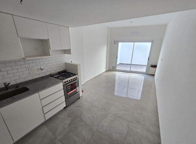 VENTA DE MONOAMBIENTE CON PATIO - VILLA URQUIZA Excelente monoambiente, cocina semi integrada, baño completo y patio. Apto profesional. Artefacto de cocina y calefacción a GAS!!! ¡ULTIMAS UNIDADES DISPONIBLES! ¡¡¡POSESION INMEDIATA!!! Inmejorable ubicación, a metros de Av. Triunvirato, cercano a líneas 71, 140, 169 y 175. A 5 cuadras de Subte B estación Juan Manuel de Rosas, y estación Urquiza del tren Mitre . Superficie TOTAL 38 m², 26m² cubiertos, 12 m² descubiertos (patio) Detalles de terminación: • Ventanas y ventanales en aluminio línea Módena o similar y DVH EN TODOS LOS AMBIENTES (VIDRIO AISLANTE, compuesto por dos vidrios separados con una cámara de aire seco) • Pisos y zócalos de Porcelanato en toda la unidad (simil mármol o similar en la gama de grises claros), cerámicos de primera calidad en balcones. Baños pisos y paredes revestidas en porcelanato (Calacatta o similar) • Cocinas: con muebles bajo mesada y alacenas, cocina de 4 hornallas y horno a gas marca Longvie o similar, mesada de granito y bacha de acero inoxidable • Baños completos con artefactos marca Ferrum o similar blancos, con bañera y vanitory, griferías marca FV o similar y accesorios de baños (Toallero, perchas, jaboneras, etc.) • Dormitorios con placares con frente corredizo de piso a techo, interiores completos con cajoneras, estantes y barrales • Calefacción por Tiro Balanceado marca Longvie o similar en dormitorio y pico de gas en Estar. • Agua caliente central por termotanques a gas en Terraza complementados con termotanque solar para reducir el consumo de Gas. • Frente del edificio en Planta Baja con Blindex y Acero inoxidable • Revoques exteriores a la cal completos e interiores en yeso. Cielorrasos en yeso con buña de terminación 1. Las medidas indicadas son aproximadas y al solo efecto orientativo, las medidas reales surgirán del título de propiedad respectivo. 2. El precio del inmueble puede ser modificado sin previo aviso. 3. Fotos de carácter no contractual.