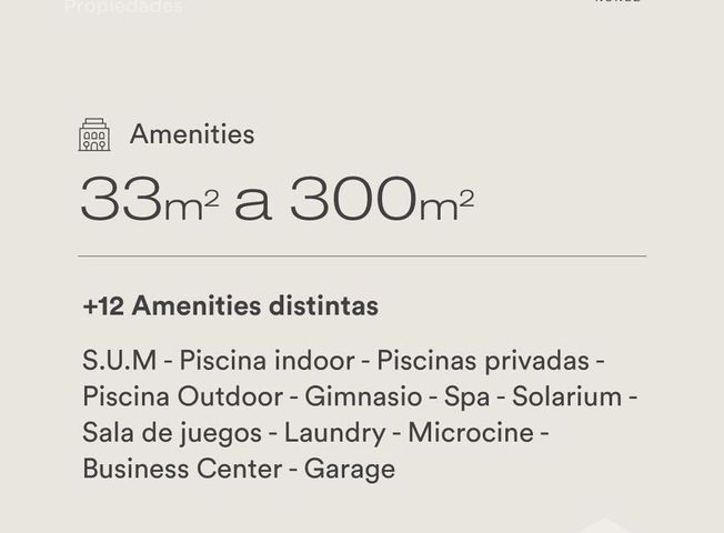 3 Ambientes en suites. Incluye con Cochera y Baulera! Cuba y Deheza - Aura Nuñez. Departamento de 2 dormitorios (ambos en suite y vestidor, uno de ellos con salida a balcon). Cocina independiente. Living comedor con salida balcon. Toilette de recepción. Incluye cochera y baulera. Superficies Cubierta: 76 m2 - Semicubierta: 7 m2 - Total: 88 m2. Fecha de entrega: Marzo 2029 Amenities y Equipamiento -Driveway en acceso principal. -Doble acceso peatonal. -Piscina y solárium con cascada natural. -Piscina indoor, Climatizada e integrada al Spa. -Spa con saunas (hombre y mujer), sala de masajes, sala de relax y vestuarios. Equipamiento incluido. -Gimnasio. -Sum: Salón de usos múltiples divisible con cocinas, baños propios. -Business Center: Espacio de Co-working y/o sala de reuniones. -Salón de juegos con mesas de Pool, Ping Pong, Consola de juegos, etc. -Kids Club: Salón de juegos para niños. -Microcine con más de 20 butacas. -Laundry. -Seguridad. Matias Psevoznik MATRÍCULA CUCICBA N° 7733 Aviso legal: Las medidas, superficies y proporciones consignadas son aproximadas y al sólo efecto orientativo y pueden variar respecto del plano y titulo de propiedad respectivos, al igual que las medidas parciales y/o de los ambientes que están sujetas a verificación y/o ajuste.- El valor indicado de expensas, si las hubiere, está sujeto a variación.- Los valores pueden ser modificados sin previo aviso.- Las fotos publicadas son ilustrativas, no contractuales y propiedad de Tovado Propiedades.- .