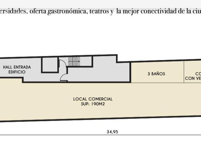 EXCELENTE LOCAL. MUY BUENA UBICACION. IDEAL GASTRONOMIA. SUPERFICIE CUBIERTA: 190M² Local de 190 metros. Cerca de todo, universidades, centros turísticos y la mejor conectividad de la ciudad. Ideal gastronomía. 3 baños. Cocina con ventilación, Edificio de vanguardia. ¡ESPERAMOS SU CONSULTA! **Las medidas y superficies expuestas surgen de la información suministrada por el propietario, la empresa no se responsabiliza por la exactitud de las mismas** **Coti en trámite** CUCICBA 5156 CMCPSI 4500 BELLAGAMBA Marketing Inmobiliario