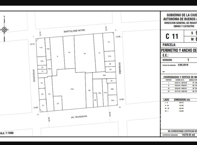 VENTA LOTE DE TERRENO BALVANERA IDEAL OINVERSOR o DESARROLLO INMOBILIARIO ------------------------------------------------------------------------------------------------------- DATOS GENERALES DEL TERRENO Dirección: Riobamba 54 / 58 Barrio / Comuna: Balvanera / Comuna 3 Superficie total de la parcela: 146,9 m2 Medidas del lote: Frente: 8,66 m / Fondo: 16,45 m Entre calles: Av.Rivadavia y Bartolomé Mitre Superficie edificada: 540 m2 PARÁMETROS URBANÍSTICOS Distrito del Código Urbanístico: C3 I Unidad de Edificabilidad: Corredor Medio (CM) Área de Alta Mixtura de Usos del Suelo 4 Altura máxima permitida: 31,2 m Altura por plano límite: 39,2 m FOT: 4 ANÁLISIS ECONÓMICO Incidencia estimada: 80 UVA/m² construible Alicuota 0,18 Plusvalía urbana: A1= (a*0.8) | 0 * 0.8 = 0 A2= FOT * Sup Parcela | 4 * 146,9 = 587,6 A= A1-A2 | 0 - 587,6 = -587,6 B= Alícuota * Incidencia UVA | 0,18 * 80 = 14,4 A * B | -587,6 * 14,4 = 0 Entorno: Se encuentra en una ubicación estratégica y de altísima conectividad, rodeado por múltiples paradas de colectivos que incluyen las líneas 105, 37, 60, 7, 90, 86, 50, 151 y 150, además de su cercanía inmediata a la estación de subte "Congreso de la Nación" de la línea A, lo que garantiza un flujo constante de personas y fácil acceso desde distintos puntos de la ciudad. A metros de la emblemática Plaza Congreso, el entorno combina dinamismo urbano con espacios verdes, y cuenta con una amplia oferta de servicios y comercios: cafeterías, restaurantes, gimnasios y sanatorios. CORREDOR INMOBILIARIO RESPONSABLE: Corredor Público Mariana Parrinello CUCICBA 8024 En cumplimiento de las leyes vigentes que regulan el corretaje inmobiliario, Ley Nacional 25.028,2.802 de Lealtad Comercial, Ley 24.240 de Defensa al Consumidor, las normas del Código Civil y Comercial de la Nación y Constitucionales, los agentes inmobiliarios (art. 1479 CCyCN) no ejercen el corretaje inmobiliario y será el martillero responsable quién suscribirá todos los documentos de ley. Las medidas, áreas y datos proporcionados en esta publicación son aproximados y solo de carácter informativo. La información definitiva se encuentra en la escritura del inmueble y/o los planos correspondientes. Inmueble identificado con el código KLA7394321