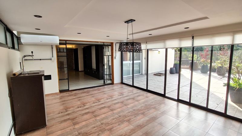 Se trata de un departamento de 4 ambientes con dependencia, con una superficie cubierta de 140 m² y total de 200 m², incluyendo un cerramiento tipo quincho de 25 m² y una terraza propia de 40 m², con toldo y aberturas de aluminio con DVH. El departamento se encuentra en muy buen estado general, reciclado con materiales de calidad y pensado para el confort. Tiene aberturas DVH en todos los ambientes, pisos de porcelanato y flotantes, puertas blindadas Pentágono principal y de servicio, y una distribución funcional. Cuenta con: * Living comedor amplio con salida directa al quincho, que se integra con la terraza y genera un espacio ideal para reuniones y asados. * Tres dormitorios bien ventilados y luminosos, todos con aire acondicionado, pisos flotantes, placards y carpinterías DVH. * Dos baños completos en el distribuidor de habitaciones y toilette de servicio junto a la cocina. * Cocina independiente con lavadero separado. * Calefacción y agua caliente central, seguridad 24 hs y servicio de plomería permanente del edificio, lo que suma valor y tranquilidad a la vida cotidiana. El edificio es de buena categoría, con mantenimiento constante y expensas acordes a los servicios que ofrece. Posee disponibilidad de cocheras en alquiler. Las medidas son aproximadas.