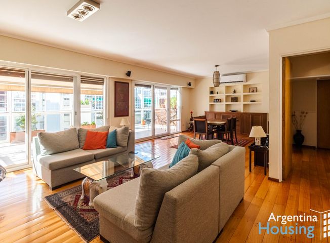 EXCELENTE OPORTUNIDAD DE INVERSIÓN!! Venta de Espectacular Dúplex de 4 ambientes a metros de Av. Libertador. Gran balcón terraza con vista al Hipódromo de Palermo! Pura luz! PLANTA 1: Living y comedor apaisado con piso de madera tarugada con salida a impactante balcón/terraza con vista al hipódromo de Palermo. Toldo eléctrico y parrilla. Toilette de recepción. Cocina con espacio para desayunador. Lavadero y dependencia con baño de servicio. PLANTA 2: Dormitorio principal con salida a balcón. Amplio vestidor y gran baño en suite con ducha en cabina y jacuzzi. 2do. y 3er dormitorio con salida a balcón. Cuentan con cómodos placards. Baño completo con luz y ventilación natural que comparten ambos dormitorios. Servicios centrales (Calefacción por losa radiante/ Agua caliente central) Splits frío/calor en ambas plantas. Cochera (espacio guardacoche). Baulera en subsuelo de 5m2. Superficie cubierta:141m2 Superficie piso 9: 96 m2 Superficie piso 10: 83 m2 SUPERFICIE TOTAL: 179M2 PRECIO: USD 485.000.- Expensas: $485.100- Bajas expensas!!!