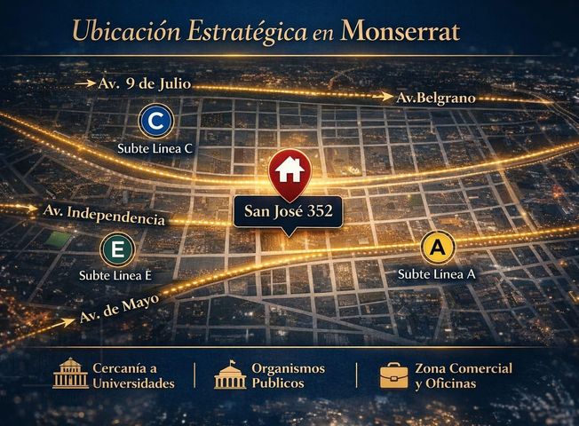Impecable Piso Completo 160m² en Monserrat - Ideal e-commerce Coworking / Productora / Estudio Profesional Ubicado en el histórico barrio de Monserrat, a metros de principales avenidas (Av. Belgrano, Av. Entre Ríos y Av. 9 de Julio). Excelente conectividad con múltiples líneas de colectivos y subtes, facilitando el acceso para empleados y clientes. Potencial del Inmueble: Gracias a su disposición y metraje, es el espacio ideal para: -Agencias de Publicidad o Productoras Audiovisuales (perfecto para sets de grabación/streaming). -Espacios de Coworking o centros de capacitación. -Estudios Jurídicos o Contables de gran escala. -Sedes corporativas. Características: - Superficie: 160 m² de planta eficiente y funcional. - Ubicación: 4to piso al frente, con gran entrada de luz natural. - Distribución: Actualmente cuenta con divisiones livianas que permiten mantener despachos privados o integrarlos fácilmente para crear un gran espacio de Open Office / Coworking. - Servicios: 4 toilettes independientes (ideal para alto flujo de personas). - Edificio: Edificio de categoría exclusivamente profesional. Cuenta con un ascensor. - Estado: Pisos de madera en excelente estado (estilo parquet) que le brindan calidez y distinción. Nota importante: Son dos oficinas en el mismo piso , venta por las dos juntas ! Gastos de expensas del piso completo incluye el servicio de aysa $800.000 Todas las operaciones son a cargo del Martillero y Corredor Público Inmobiliario responsable: Gustavo De Simone CUCICBA 8456 / CMCPSI 6661. La información y medidas provistas son aproximadas y deberán ratificarse con la documentación pertinente y no compromete contractualmente a nuestra Empresa. Los Gastos expresados (expensas, ABLl, etc.) se refieren a la última información recabada y deberán confirmarse. Las fotografías no vinculantes ni contractuales. En cumplimiento de las leyes vigentes que regulan el corretaje inmobiliario, Ley Nacional 25.028, Ley 22.802 de Lealtad Comercial, Ley 24.240 de Defensa al Consumidor, las normas del Código Civil y Comercial de la Nación y Constitucionales, los Brokers NO ejercen el corretaje inmobiliario. Todas las operaciones inmobiliarias son objeto de intermediación y conclusión por parte del Corredor Público Inmobiliario colegiado, cuyos datos se exhiben en cada publicación de propiedad objeto de comercialización.