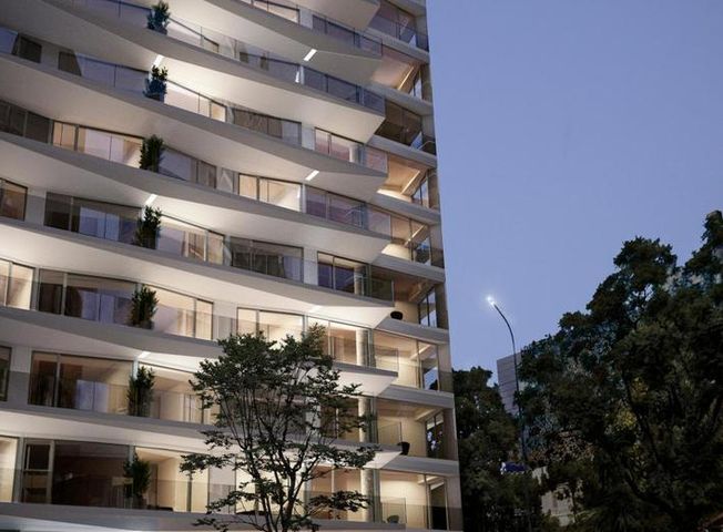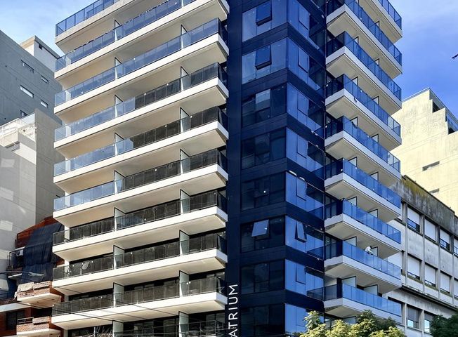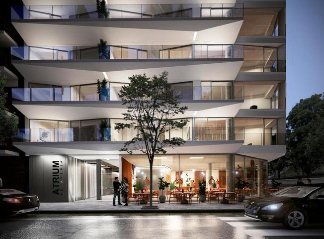 VENTA - DEPARTAMENTO DOS AMBIENTES CON BALCON CORRIDO - LAS CAÑITAS. ATRIUM ESLOVENIA Unidad dos ambientes con balcón corrido al frente y toilette de recepción. El departamento cuenta con una cocina equipada, bajo mesada de granito negro Brasil o cuarzo natural y alacenas, horno empotrado, anafe vitro cerámico eléctrico, pileta de acero inoxidable marca Johnson o similar. Se encuentra semi incorporada al amplio living-comedor con salida al balcón corrido. Dormitorio en suite con vestidor. Grifería monomando FV o similar, pisos de SPC o porcelanato y zócalos de madera pintados. - BAÑOS Pisos y paredes con revestimientos en porcelanato. Losa y vanitory marca Ferrum o similar. Grifería mono comando FV o similar. - CARPINTERÍAS INTERIORES Puertas de acceso de madera macizada y enchapadas en roble. Puertas interiores en placas de mdf para pintar. - CARPINTERÍAS EXTERIORES Frentes de aluminio A30 new o A40 anodizado, con DVH. - PROVISIÓN DE AGUA Agua caliente, Central. - CLIMATIZACIÓN Aire acondicionado frío/calor individual. Incluye equipos. - TERRAZAS Y BALCONES Pisos de porcelanato y barandas de vidrio. - ASCENSOR MONTA AUTOS Con acceso directo a cocheras. PISO 13 SUM-PARRILLA-SKY LOUNGE-SOLARIUM-JUEGOS PARA NIÑOS.
