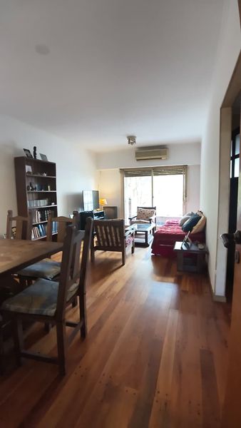 HALL DE RECEPCIÓN 1.60 x 2.00 - AMPLIO LIVING DE 3.30 x 5.80 CON PISOS DE MADERA ENTARUGADO CON SALIDA AL BALCÓN DE 5.50 x 1.10 COCINA COMEDOR DIARIO DE 4.10 x 3.30 CON AMOBLAMIENTOS COMPLETOS Y SALIDA AL PATIO TERRAZA DE 8.66 x 4.50 CON PARRILLA - LAVADERO DE 3.30 x 1.60 - 2 DORMITORIOS DE 3.15 x 3.00/3.20 x 2.90 AMBOS CON PLACAR Y PISOS CERAMICOS - BAÑO COMPLETO -