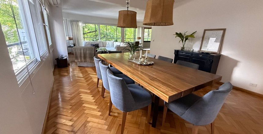 DPTO EN VENTA 4 AMB C/DEPENDENCIA EN PALERMO CHICO EQUIPO RE/MAX VENDE!! Excelente departamento en edificio de categoría, semipiso de 4 ambientes mas dependencia con 2 Cocheras, Terraza de 104m2, Balcón y jardín de invierno. (300m2 totales) . PALERMO CHICO Edificio compuesto exclusivamente por semipisos y seguridad las 24hs. La unidad ubicada en el primer piso cuenta con una excelente distribución: - Doble acceso: entrada principal (palier privado) y puerta de servicio. - Living amplio y luminoso con salida a Balcón abierto y al jardín de invierno. - Comedor de amplias dimensiones y muy luminoso. - Cocina con muebles alto y bajo mesada, conexión para lavavajillas y espacio de comedor diario. - Lavadero independiente con bacha, conexión para lavarropas y muebles alto y bajo mesada. - Baño de servicio con ducha. - Habitación de servicio con placard de amplio guardado. - Toilette de recepción para invitados. - Dormitorio principal: Muy espacioso con vista a la terraza, placares amplios y baño en suite. - Segundo dormitorio: Gran ventanal con salida a la terraza y placard de piso a techo. - Tercer dormitorio (actualmente es un escritorio) con salida a la terraza y placard de piso a techo. - Baño completo - Terraza de 104 m2 con parrilla, super luminoso. - Pasillos de distribución con espacios de guardado. Ademas cuenta con 2 cocheras cubiertas y una baulera. CARACTERISTICAS: Cuenta con Loza radiante por caldera individual (instalada a nueva hace poco). Agua caliente por termotanque. Pisos de Parque Todos los ambientes ventilan al exterior. Balcón y terraza con vista a Scalabrini Ortiz. Orientación Noreste. Vidrios con DVH. Cierre hermético Persianas eléctricas. Aire acondicionado en todos sus ambientes. Cerradura Biometrica. Ubicada en Palermo Chico, una de las zonas más exclusivas y residenciales de la ciudad, en un entorno arbolado y tranquilo. A pasos de Av. del Libertador y Av. Las Heras. A metros del Parque Las Heras. Próxima a embajadas, colegios de primer nivel y clubes deportivos. Zona con destacada oferta gastronómica, comercial y cultural. Esta propiedad se destacada sin duda por su excelente distribución, su gran luminosidad y el gran tamaño de sus espacios exteriores y por su excelente ubicacion. Propiedad de categoría y alto nivel constructivo. No dejes de visitarla! Contactanos para mas informacion.