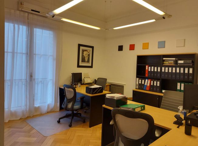 Muy buen edificio apto profesional. La planta se encuentra dividida y en excelente estado. Los ambientes son amplios y luminosos. La planta esta conformada al frente la recepción, despacho principal, sala de directorio y un toilette, al contrafrente se encuentran tres despachos con dos baños completos uno en suite, ademas cuenta con una cocina, comedor diario y archivo con un toilette de servicio. Impuesto municipal mensual. AySA bimestral Las medidas y valores son aproximados. Comision 4% mas I.V.A. Metros Totales: 226.00. Para mas información comunicate al WhatsApp +11 4042-6671