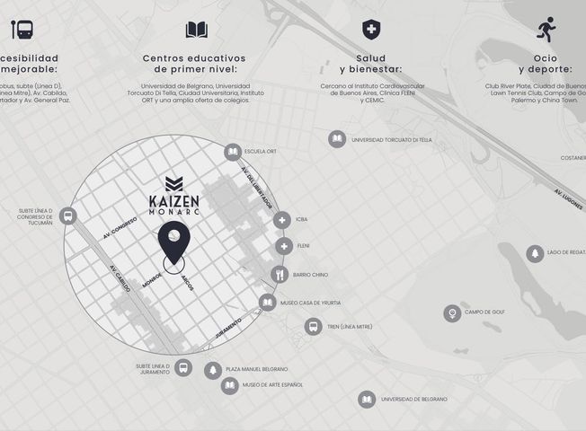 KAIZEN MONARC · Arcos y Monroe · Belgrano El nuevo ícono residencial de Belgrano creado por una desarrolladora con trayectoria comprobada. Este proyecto redefine el diseño, el confort y la exclusividad en una de las esquinas más preciadas de Belgrano. Pensado para quienes buscan vivir o invertir con alto estándar arquitectónico, este desarrollo combina ubicación estratégica, calidad constructiva superior y amenities de nivel internacional. DOS AMBIENTES En un espacio inteligente desde 53,59m² que maximiza cada rincón. Ambientes amplios y luminosos con cocina integrada equipada con anafe eléctrico y horno empotrado, espacio para lavarropas o lavavajillas y un placard con interiores completos e iluminación LED. El baño tiene espejo antiempañador e inodoro inteligente. Piso SPC de alta resistencia y porcelanatos de gran formato, carpinterías con DVH y puente térmico, puertas blindadas con cerraduras digitales y preinstalación de aire acondicionado Amenities que elevan tu calidad de vida Pensados para vivir, trabajar y disfrutar sin salir del edificio: Piscina + solárium SUM apto coworking Gimnasio Sauna & Spa Laundry + Pet’s Spa Parrilla Bicicletero con módulos de carga Ubicación privilegiada en el corazón de Belgrano Monroe & Arcos es una esquina estratégica que combina tranquilidad, conectividad y vida urbana: A metros del Metrobus y la Línea D del Subte Cercanía a Fleni, CEMIC, ICBA, Universidad de Belgrano, ORT, Di Tella Rodeado de comercios, gastronomía, River Plate, Golf de Palermo y Barrio Chino Accesos rápidos a Av. Libertador, General Paz y Lugones Ideal para vivir o invertir Este emprendimiento se destaca por: Su ubicación premium Sus tipologías versátiles Su diseño de autor La trayectoria de la desarrolladora La demanda sostenida del corredor Belgrano – Núñez Amenities altamente valorados por usuarios finales y locatarios Un proyecto con garantía de confianza y excelencia La desarrolladora suma una trayectoria sólida con edificios ya entregados en CABA, todos reconocidos por su calidad, diseño y cumplimiento: Kaizen Arcos – CABA Kaizen Viel – CABA Kaizen 303 Plaza – CABA Next Bustamante – CABA Chateau Madero – CABA Chateau Libertador – CABA El Faro – Villa La Angostura Locales Zara – Av. Santa Fe, CABA Cada uno de estos desarrollos consolida la reputación de Kaizen como una marca asociada a solidez, diseño contemporáneo y terminaciones premium. Viví Belgrano. Viví MONARC. Un proyecto pensado para quienes buscan una experiencia residencial superior respaldada por una marca de trayectoria. Consultá por: - Valores preventa - Financiación - Unidades disponibles - Planos y videos del proyecto *Importante: Las imágenes presentadas en esta publicación son de carácter ilustrativo y corresponden a renders generados mediante inteligencia artificial. Por lo tanto, las características y acabados finales del producto pueden variar respecto a lo mostrado. Corredor interviniente CABA y PBA : Sebastián Gonzales Chaves CUCICBA 7716 - CMCPSI 6876 La tasación, intermediación y la conclusión de las operaciones sobre esta propiedad son actividades exclusivas de este corredor matriculado, conforme las previsiones de la ley 20.266, la ley CABA 2340, la ley provincial 10.973 y sus modificaciones y las normas reglamentarias dictadas por los colegios departamentales. Las oficinas asociadas a la red Keller Williams actúan en forma independiente, brindando servicios a corredores, agentes y al público en general, y su intervención se limita a la prestación de servicios inmobiliarios que no incluyen actos de corretaje ni intermediación inmobiliaria. Locaciones CABA - CUCICBA Para los casos de locación de inmuebles con destino habitacional en los que el locatario sea una persona física, queda expresamente prohibido requerir y/o percibir, mediante cualquier forma de pago, comisiones inmobiliarias y/u honorarios por la intermediación o corretaje a locatarios, sublocatarios y/o continuadores de la posesión LEY 5859 – ART. 4: Para los casos de alquiler de vivienda, el monto máximo de comisión que se le puede requerir a los propietarios será el equivalente al cuatro con quince centésimos por ciento (4,15%) del valor total del respectivo contrato. Se encuentra prohibido cobrar a los inquilinos que sean personas físicas comisiones inmobiliarias y gastos de gestoría de informes.
