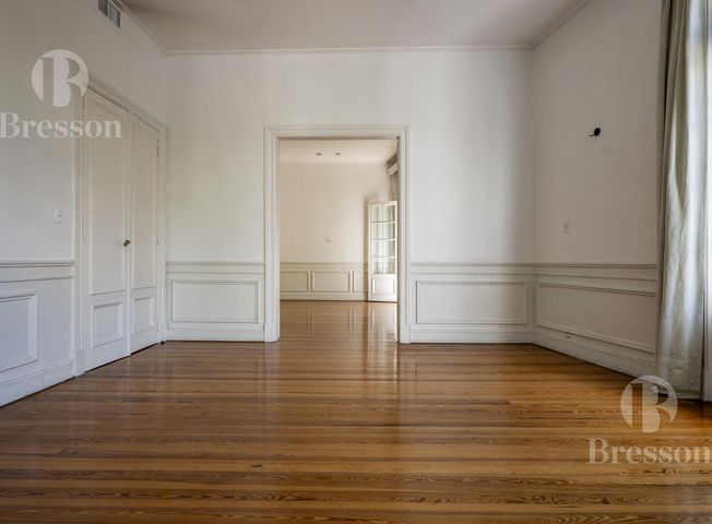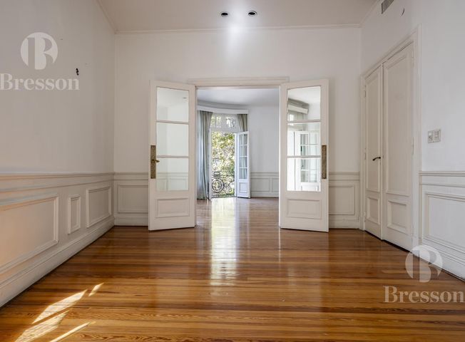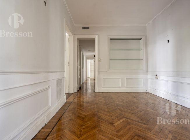 Departamento en French y Laprida. Ubicado en una esquina privilegiada, este departamento se destaca por su gran luminosidad y por contar con todos sus ambientes orientados al exterior. Conserva pisos de parquet originales, techos de aproximadamente 3 metros de altura y detalles constructivos de época que reflejan su estilo y calidad. La propiedad cuenta con 158,26 m² cubiertos, más 5,68 m² semicubiertos actualmente incorporados, logrando una planta funcional, amplia y muy bien aprovechada. Al ingresar, se accede a una amplia recepción que conecta con un living y un comedor independientes, separados por una elegante puerta vidriada que permite integrar o dividir los espacios según la necesidad. El living se destaca especialmente por sus tres ventanales en esquina, que brindan excelente luz natural y una gran sensación de amplitud. Dispone de cuatro dormitorios de buenas dimensiones, un baño completo con posibilidad de subdivisión para generar otro, y un toilette con potencial para transformarse en baño completo. La cocina es independiente, con acceso por unos escalones, y cuenta con espacio para comedor diario. Además, posee dependencias de servicio separadas, con acceso por escalera, que incluyen dos habitaciones y un baño. Se trata de una propiedad con gran potencial de actualización, ideal para quienes buscan estilo, amplitud real y el encanto de la arquitectura clásica. Incluye cochera ubicada en edificio a media cuadra. Las medidas, monto de expensas y ABL son aproximadas y al solo efecto orientativo. Las medidas reales surgirán del título de propiedad respectivo. Esta vivienda SI/NO se encuentra apta para personas con movilidad reducida. La aptitud jurídica y crediticia del inmueble para ser dado en hipoteca dependerá, en definitiva, de la evaluación que realice la entidad prestataria. CPI Federico Ayerza - Mat. CUCICBA 2748. .