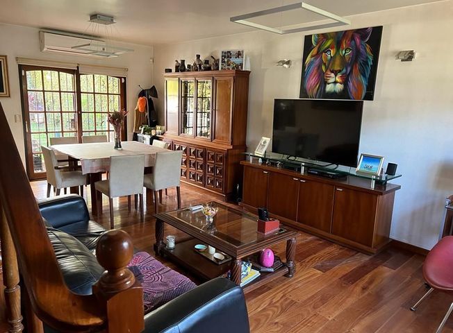 Excelente chalet en 2 plantas, de 5 ambientes, cocina-comedor diario, 3 baños, lavadero, garage cubierto y pasante al fondo, jardin, parrilla y fondo libre sobre la calle General Fructuoso Rivera. a menos de una cuadra de la Av. Lafuente. centro comercial del barrio. En su totalidad tiene 241 m2, de los cuales 200 m2 son cubiertos y 41 m2 descubiertos, todo sobre un lote de terreno de 200 m2. En excelente estado de conservación. apto credito 50% pagadero hasta en 5 años acepta permutas .