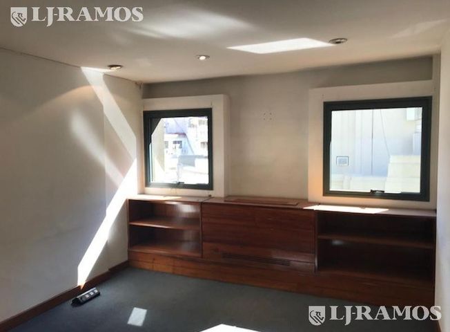 Edificio DOW JONES Edificio en esquina de excelente categoría. Semipiso en esquina. Planta dividida en muy buen estado. Despachos perimetrales. Área de trabajos. Sala de reuniones. 2 baños generales. 1 baños privado. Cocina. Aire acondicionado central frío calor del piso. Una cochera fija con ingreso por calle Sarmiento. Cielorraso con artefactos de iluminación. Buena luz natural. Seguridad 24 hs.