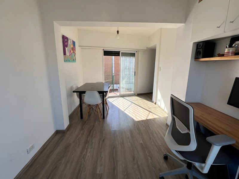 Departamento en venta en Palermo Soho Venta no condicionada, entrega inmediata. Departamento reciclado por completo 2 ambientes con dos balcones. Sup Cub: 37m2; Sup Tot: 49m2. Ubicado en un decimo piso, se llega por ascensor hasta el noveno y un piso por escalera. Refaccionado en el año 2020. Hall de entrada, living comedor de 2.70 x 4.75 con pisos símil madera, aire acondicionado y estufa tiro balanceado. Salida a balcón corrido de 1.15 x 7.20 al frente orientación sudeste y balcón contra frente de 0.85 x 3.00 con orientación norte muy luminoso. Cocina moderna con muebles completos, barra desayunadora, horno y calefón, lavadero independiente. Dormitorio con placard de 3.45 x 2.00 con salida al balcón del frente. Baño con ducha. Sobre Avenida Scalabrini Ortiz, cerca de plaza Armenia, Botánico y de Avenida Santa Fe, Subte "D", variadas líneas de colectivo y tren. Detalles: Ventilación cruzada, puertas ventana con doble vidrio, persianas y rejas, única unidad en el piso, terraza de uso común. Las descripciones, fotos y medidas de este inmueble son aproximados. Por lo cual pueden arrojar inexactitudes y discordancias con las que surgen de los títulos y planos legales del inmueble. La propiedad si cuenta con acceso para personas con movilidad reducida segun ley 5115. Galarza Propiedades Gonzalo Galarza Mat C.U.C.I.C.B.A 9039.